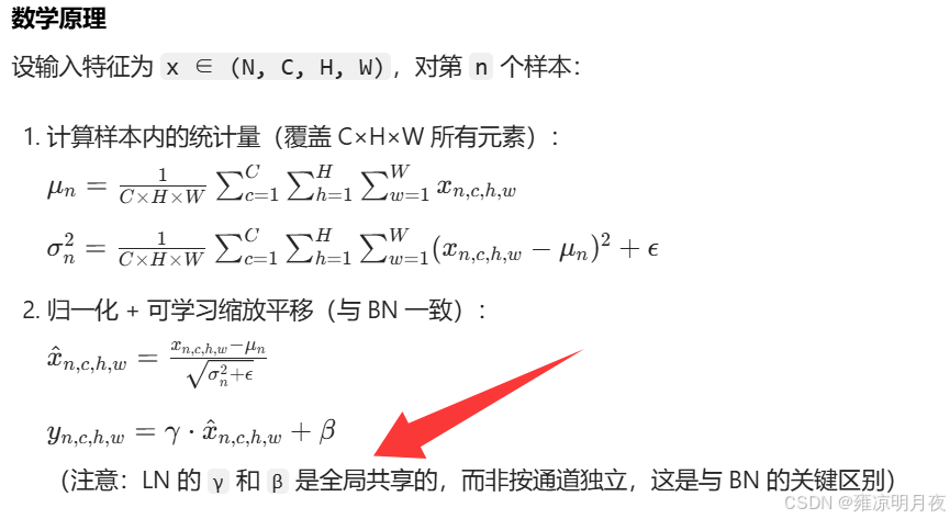 # 2. CNN 场景(输入形状:(N, C, H, W),normalized_shape=(C, H, W))
