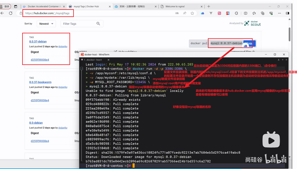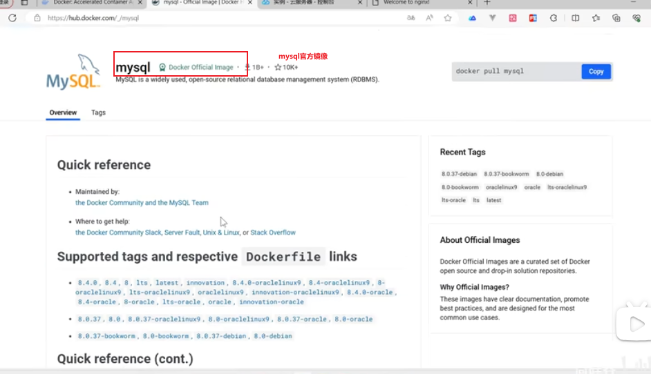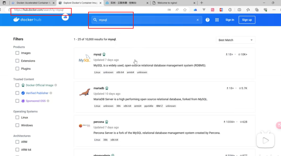 1.去hub.docker.com搜索mysql镜像,并且查看相关命令参数使用用法