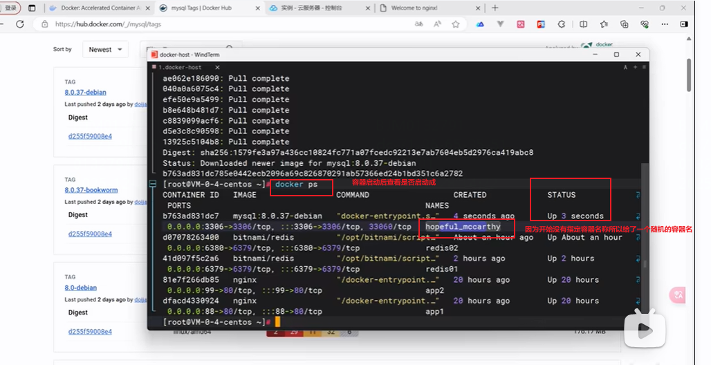 5.指定容器名称 --name,如果不指定容器名称docker会随机给一个名字,一般建议指定