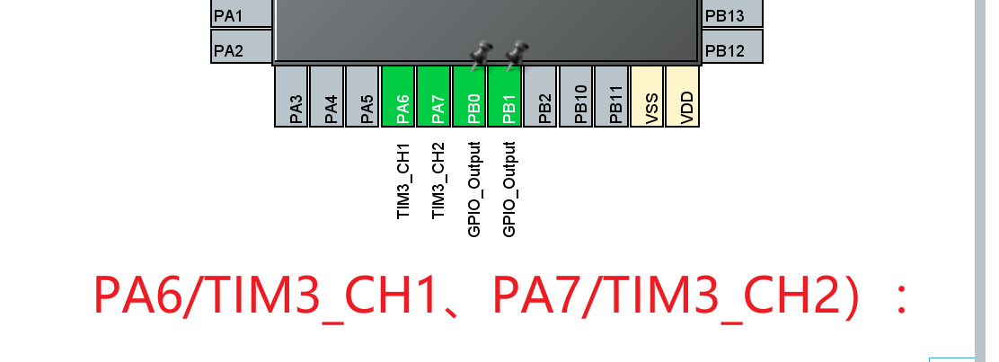 用于输出模拟 A/B 相脉冲,需连接到 TIM3 的编码器输入引脚(PA6/TIM3_CH1、PA7/TIM3_CH2):