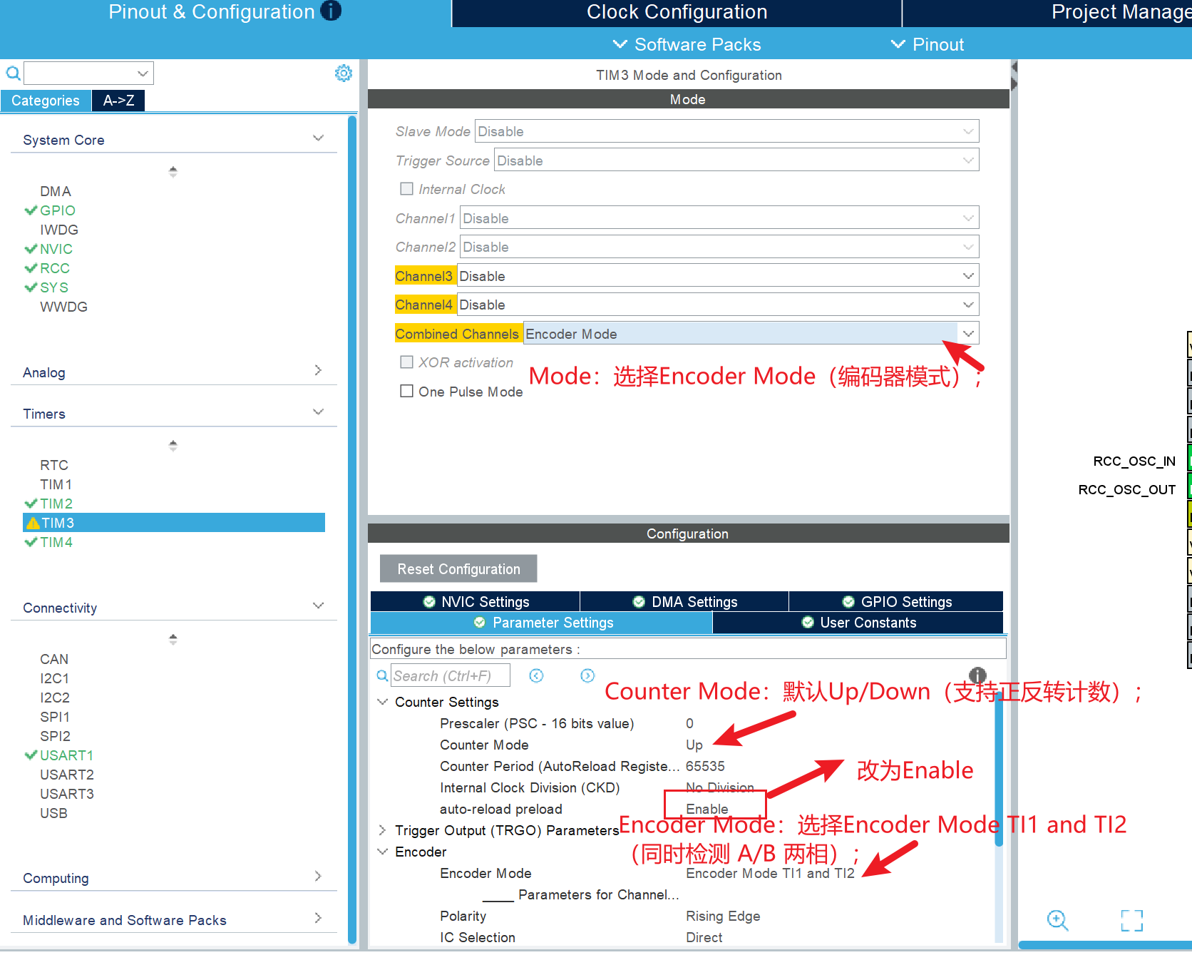 Encoder Mode:选择Encoder Mode TI1 and TI2(同时检测 A/B 两相);
