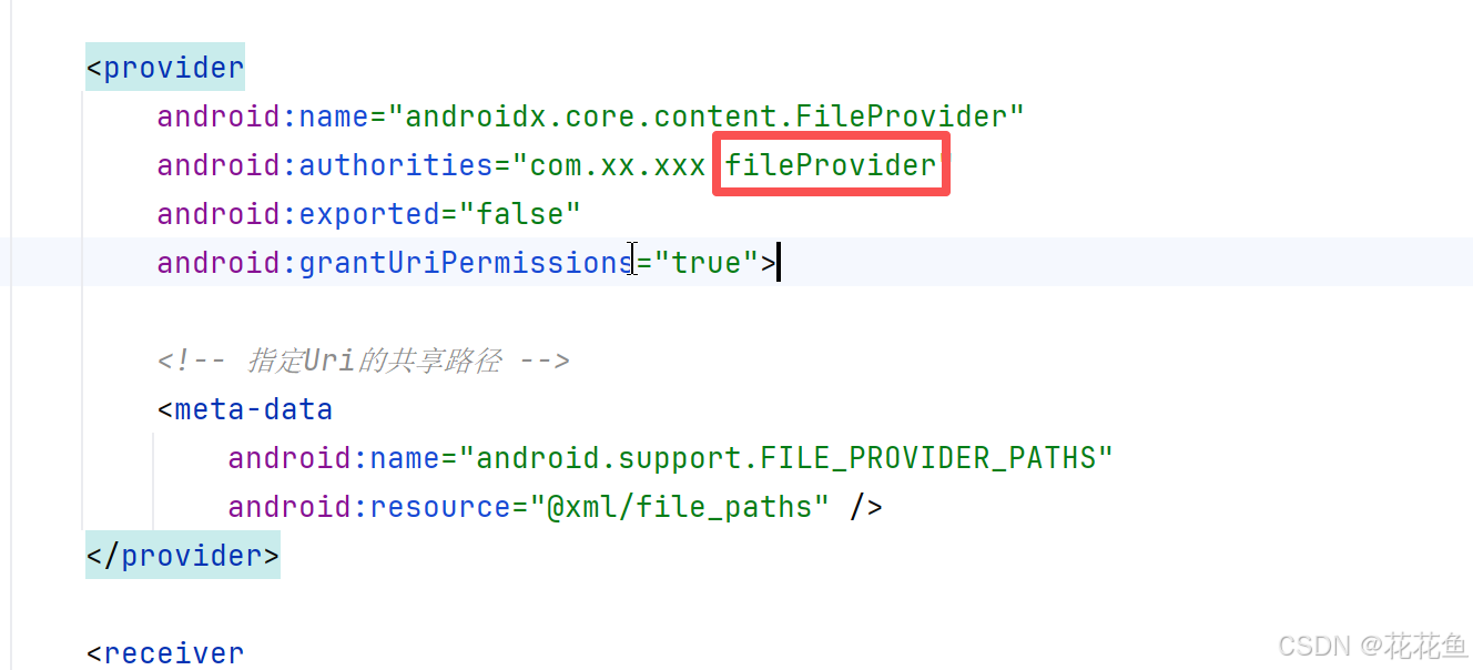 android:authorities=com.xx.xxx.fileprovider(三处完全一致); - ✔️