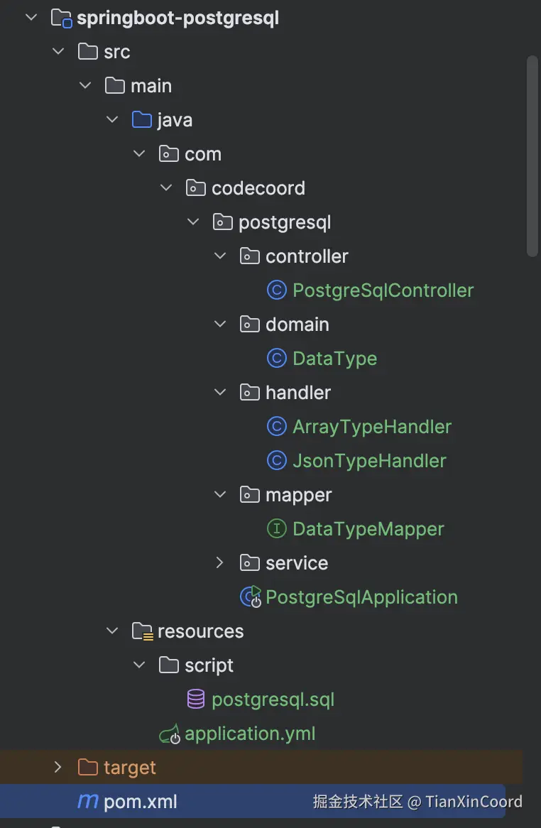 - 项目整体结构如下,实现方式有多种,以下是其中一种基于 TypeHandler 的实现
