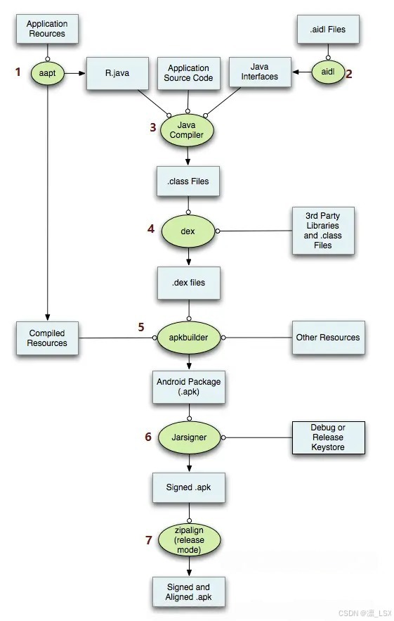 1.资源文件(主要xml)通过aapt打包编译成二进制文件.arsc,生成R.java