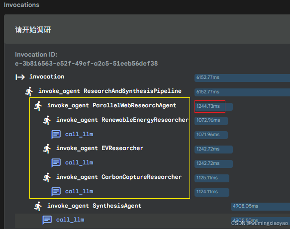 你会发现 Parallel Agent 调用时间通常接近于三次搜索中最慢的那一个,而不是三者之和