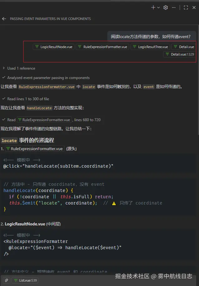 一般来说,debug 的过程是,遇到问题,我判断问题可能出在哪个页面,是哪个功能,通过什么操作复现的,然后我会在 vscode 的 chat 框引入对应的文件,并且把操作过程和错误以及我的猜测都输入进去,开启 agent 模式,发送,然后等待结果返回。一开始,在 claude sonnet 3.5,3.7的很多时候其实没有那么好用,会给很多看似改对了但是再去操作一遍还是没用的代码,不得不说这个是真的浪费了不少时间,换在以前自己早都改完了,还有耐心在这和它聊噢。但是想了想,后面模型能力提升了和AI协作必不可少,也就继续和它"沟通"。