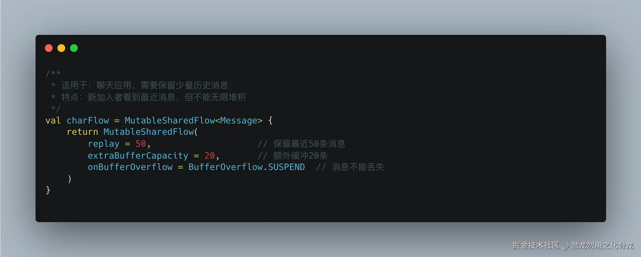 · replay 是持久性缓存,无论是否有订阅者都会保留 · extraBufferCapacity 是临时性缓冲区,只在有订阅者时生效 · 没有订阅者时,总缓冲区大小 = replay