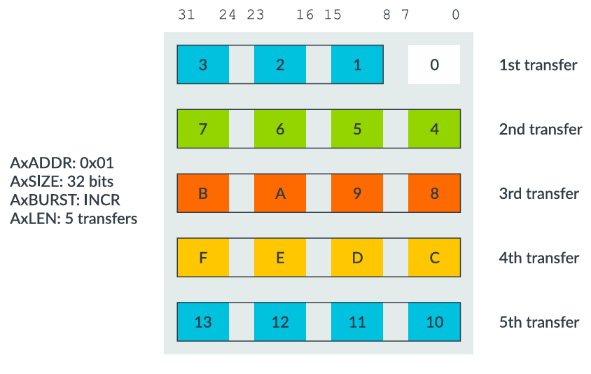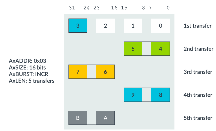 比如要发一个5-beat 16bit size的transaction,地址开始于0x03: