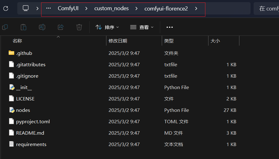 也可下载文件,安装至..\ComfyUI\custom_nodes\comfyui-florence2文件夹