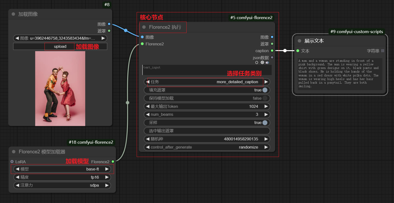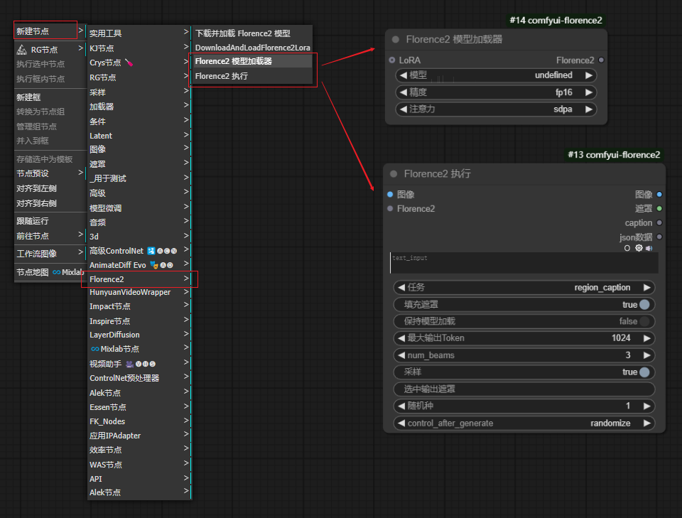 新建路径:新建节点→Florence2→Florence执行