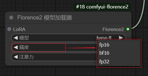 模型加载器中,精度有fp16、bf16及fp32三种,实测三者差距并不明显,默认fp16即可。