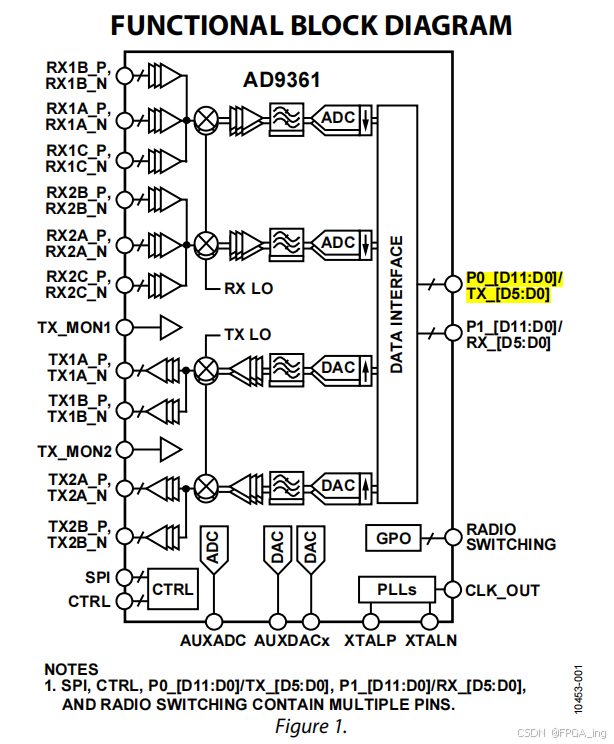 AD9361的输入以及输出的数据以及时钟都是差分信号,对于输入数据需要差分转单端,输出数据需要单端转差分。