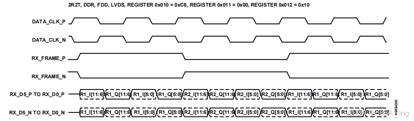 2R2T、FDD模式下需要四个时钟才能完成的接收完一个12位的数据,在RX_FRAME_x为高时,接收