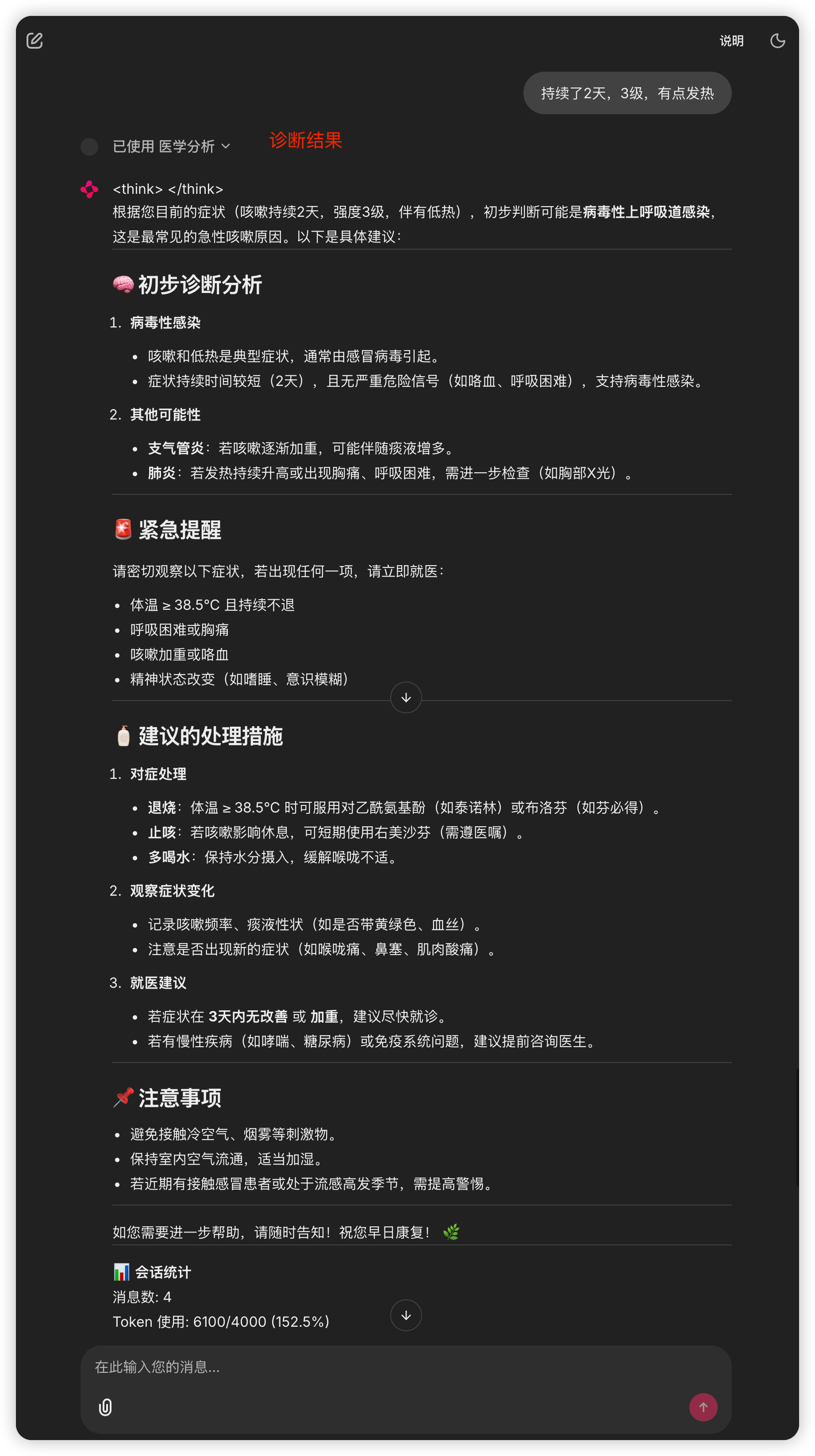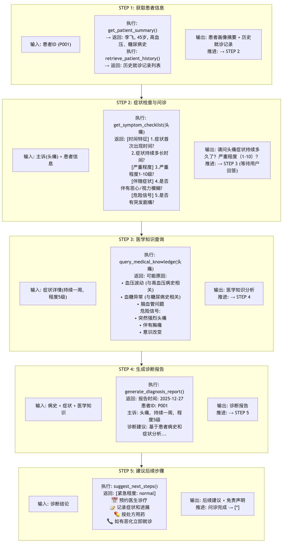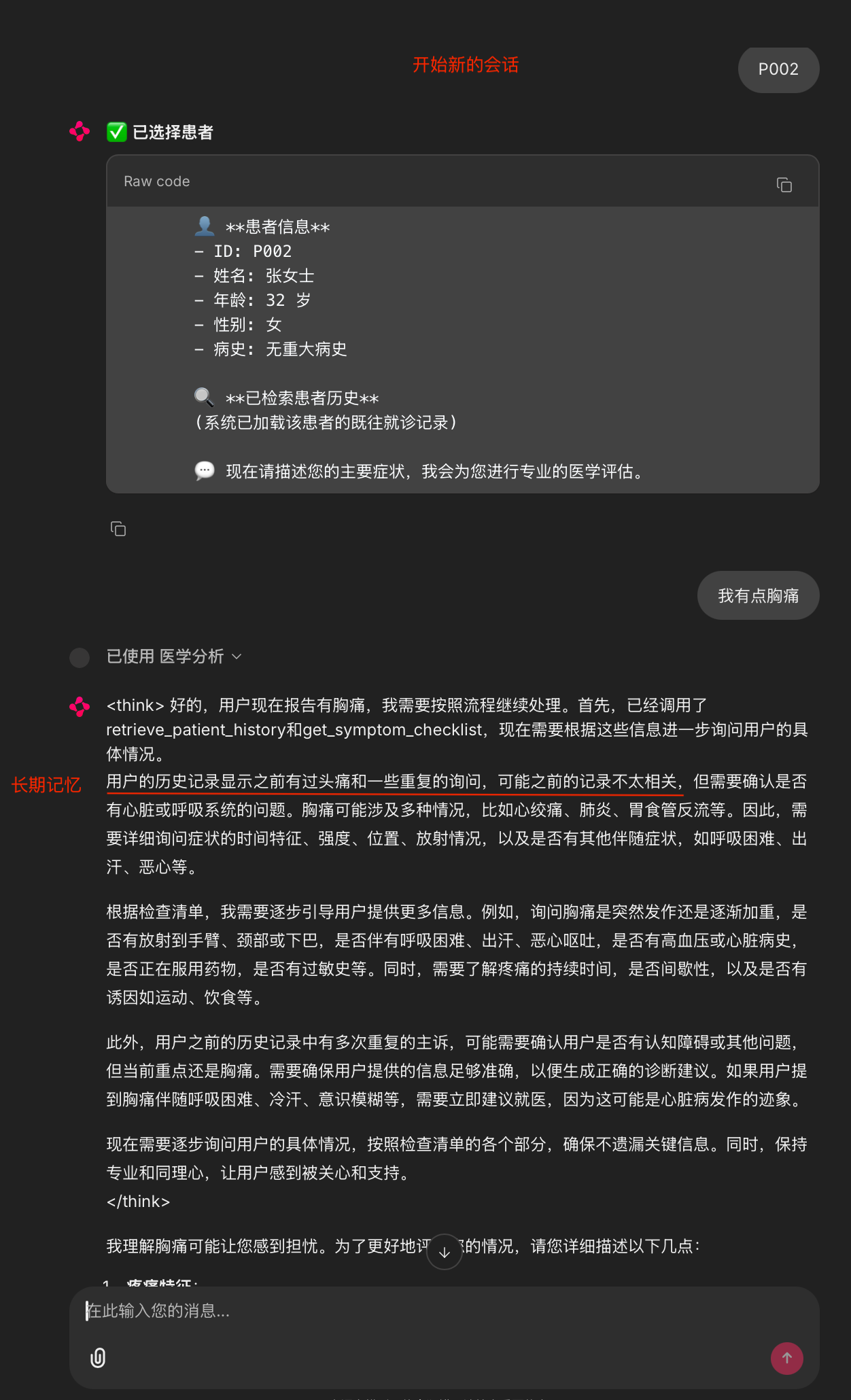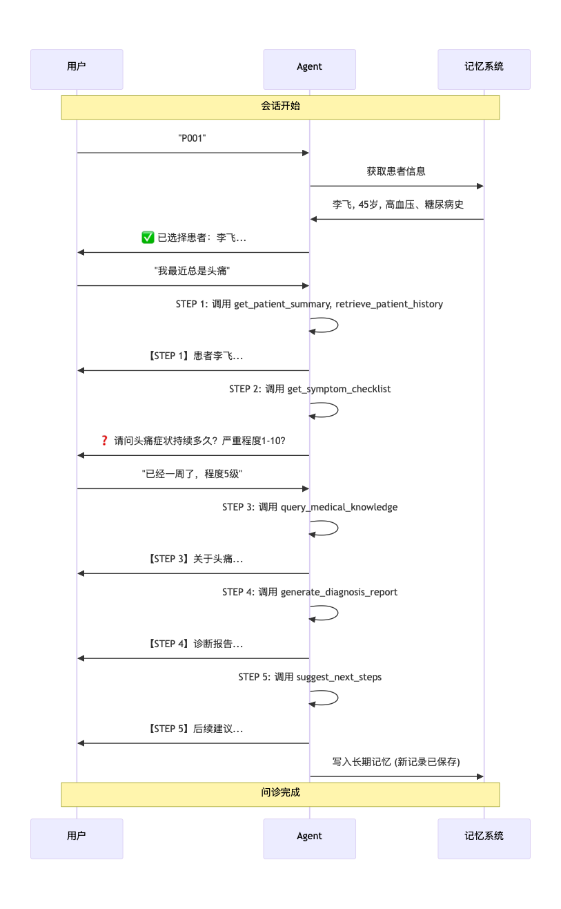 为了更好地理解整个系统的工作流程,让我们通过一个完整的问诊示例来演示各个环节的交互。