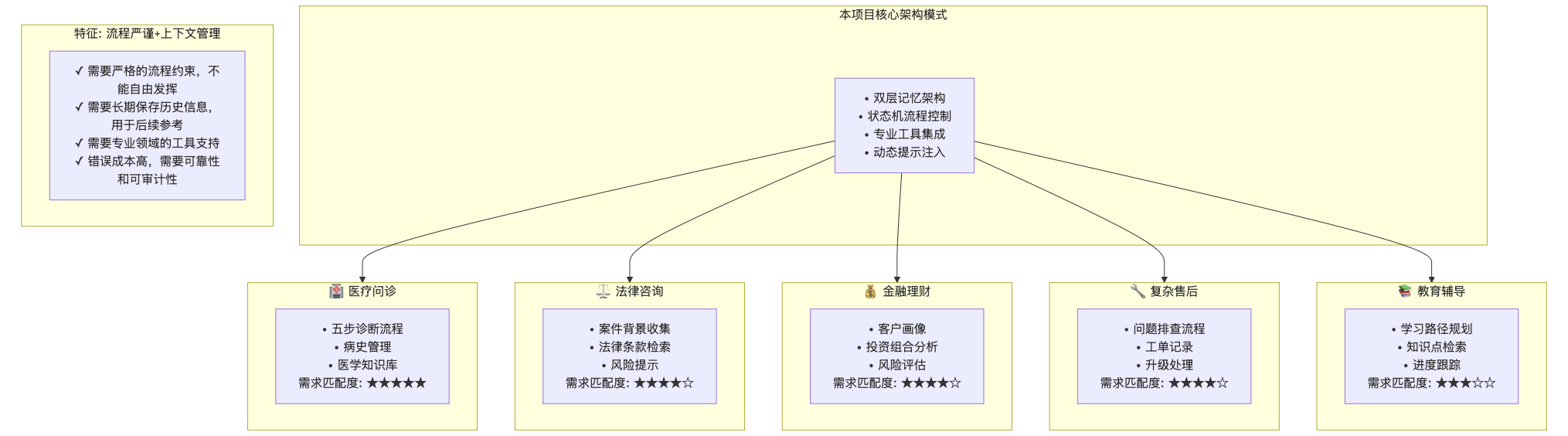 这个项目的技术价值不仅局限于医疗场景,其架构设计理念对于法律咨询、金融理财、复杂售后服务等任何需要严谨流程约束和长周期上下文管理的业务领域,都具有极强的通用借鉴意义。
