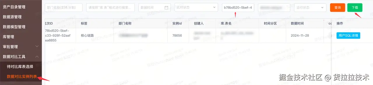 - 明细比对:对比整行数据的差异,可以指定主键和排除字段