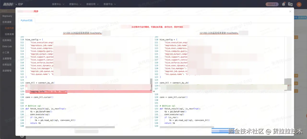 为确保计算任务代码、数据及元数据在多环境间的高度一致性,数据平台自主研发了自动同步功能。该功能实现了主环境到备环境的实时双向同步,当用户在主环境进行代码修改、数据更新或配置调整时,系统会自动、精准地将变更内容同步至备环境。