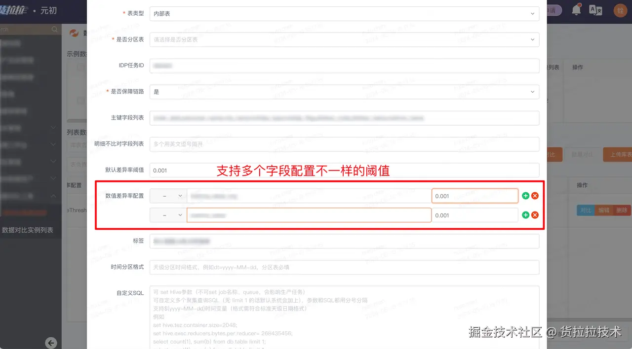 - 数值差异比对:将数值字段按照 +-*/ 等规则计算差异率,并可单独指定每个字段的差异率阈值