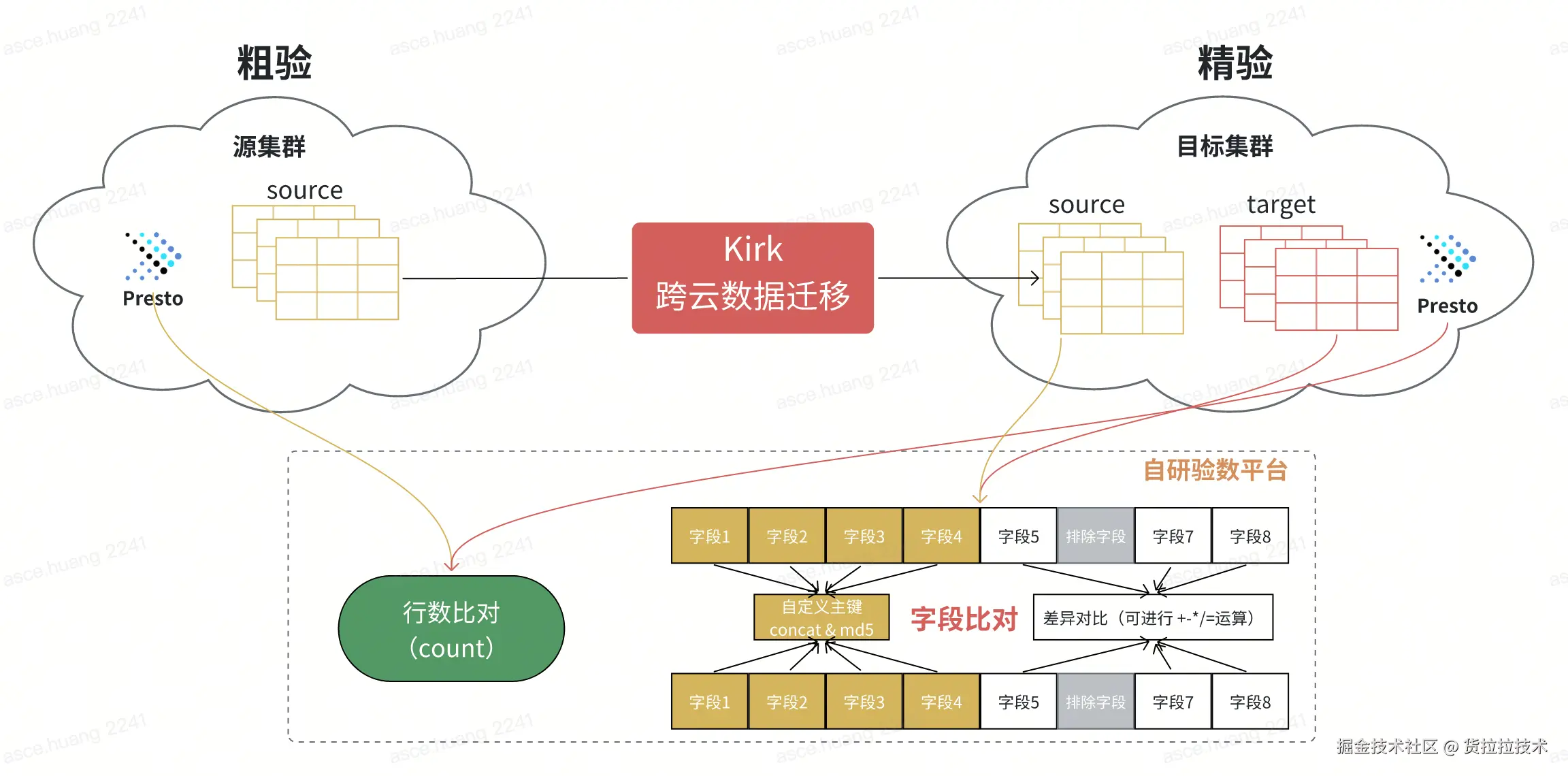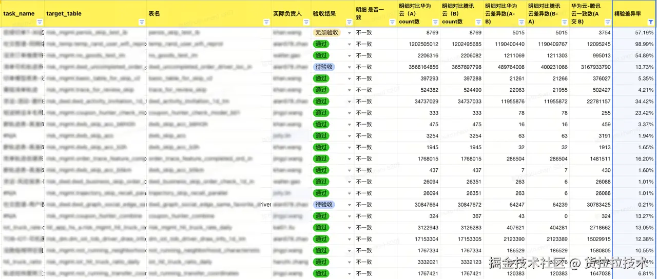 在前两篇文章中,我们分别从宏观层面梳理了离线大数据迁移的整体流程与关键挑战(《货拉拉离线大数据跨云迁移-综述篇》),并详细介绍了实际数据迁移过程中的策略、步骤与注意事项(《货拉拉离线大数据跨云迁移 - 数据迁移篇》)。然而,云迁移工作并不在"数据搬运完成"这一刻画上句号------迁移后的数据是否完整、准确、一致,直接决定了业务系统能否平稳切换、分析结果能否可靠可信。