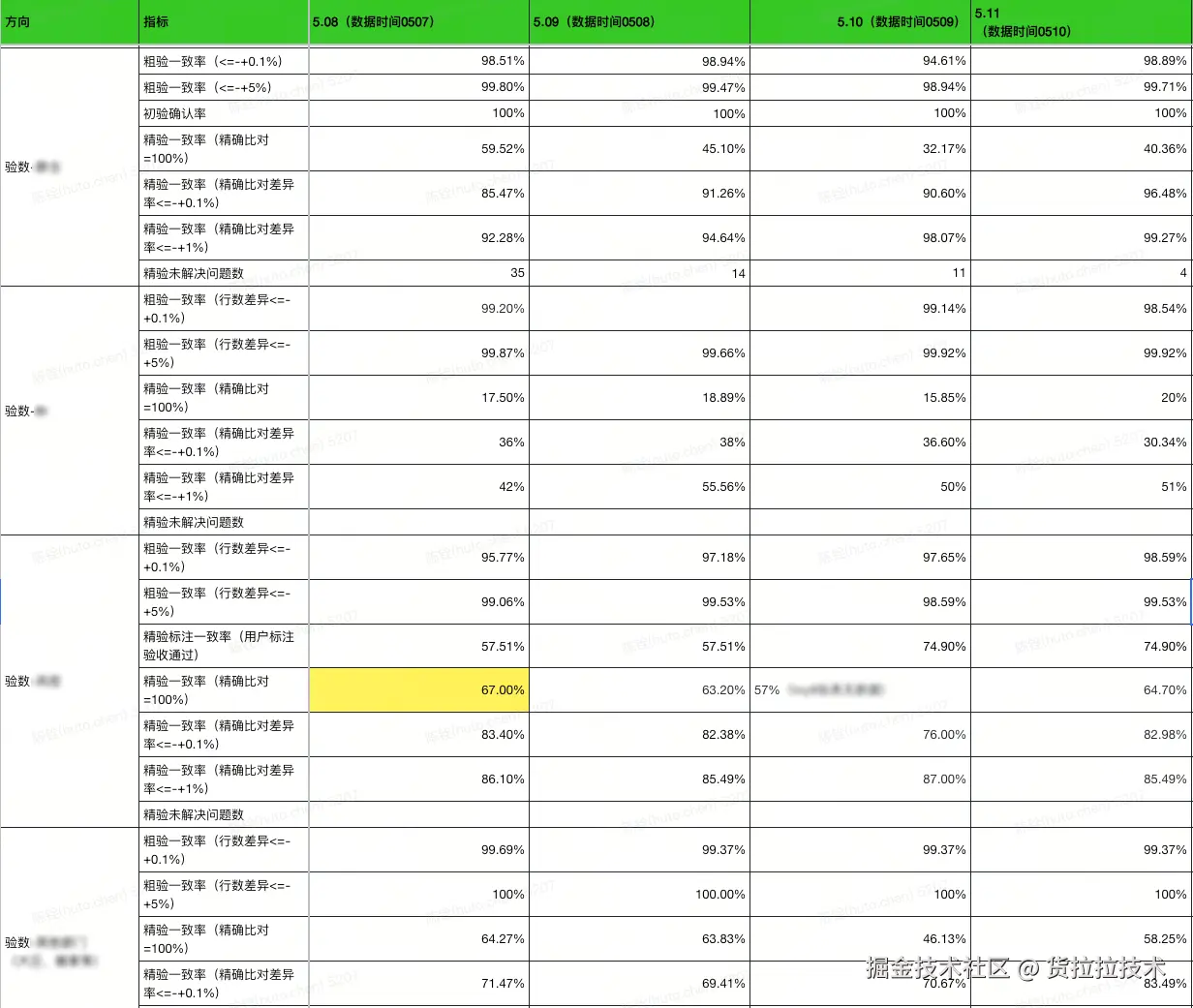 - 采用"云内比对 + 分层验证(粗验 / 精验)"策略,构建自动化验数工具,支持多维度比对(行级、字段级、聚合级)