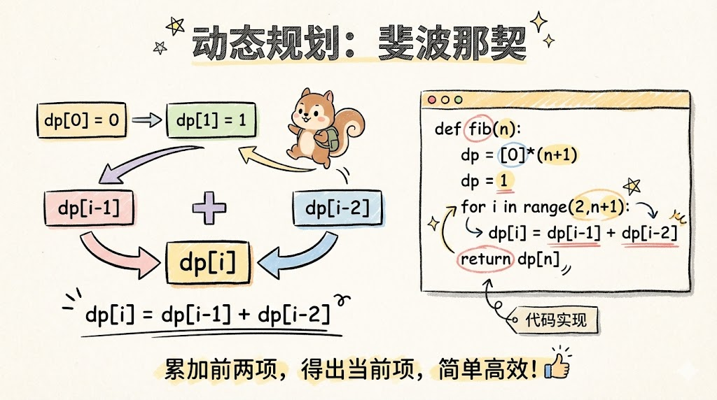 输入 LeetCode 动态规划问题描述,输出:卡通路径图,节点为状态转移,手绘箭头标 dp[i] 公式, mascott 程序员挠头思考。