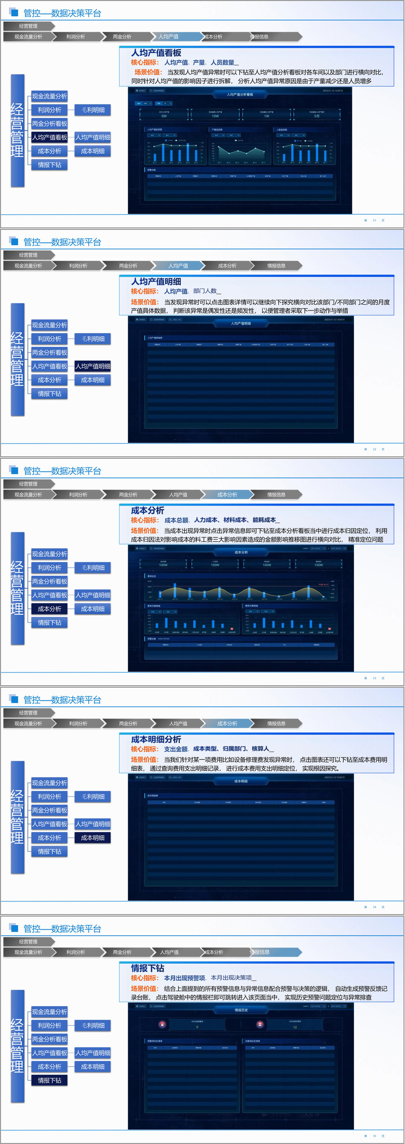 在解决方案的核心部分,文件提出了清晰的解决思路。对于精益生产,主张引入精益理念,对研、产、供、销等环节进行投入产出监控与根因分析,实现降本增效。对于供应链协同,强调利用PDCA闭环管理思维,对计划、执行、预警、反馈全流程进行监控,提升整体运营效率。对于能力展示,则需系统梳理企业各项实力指标,构建透明的信息展示平台,既满足管理需求,又契合政策导向,彰显企业正能量。