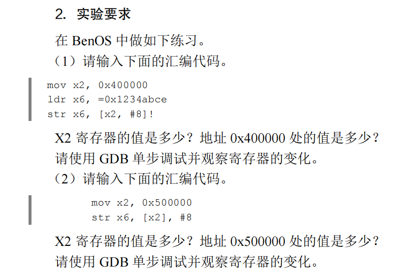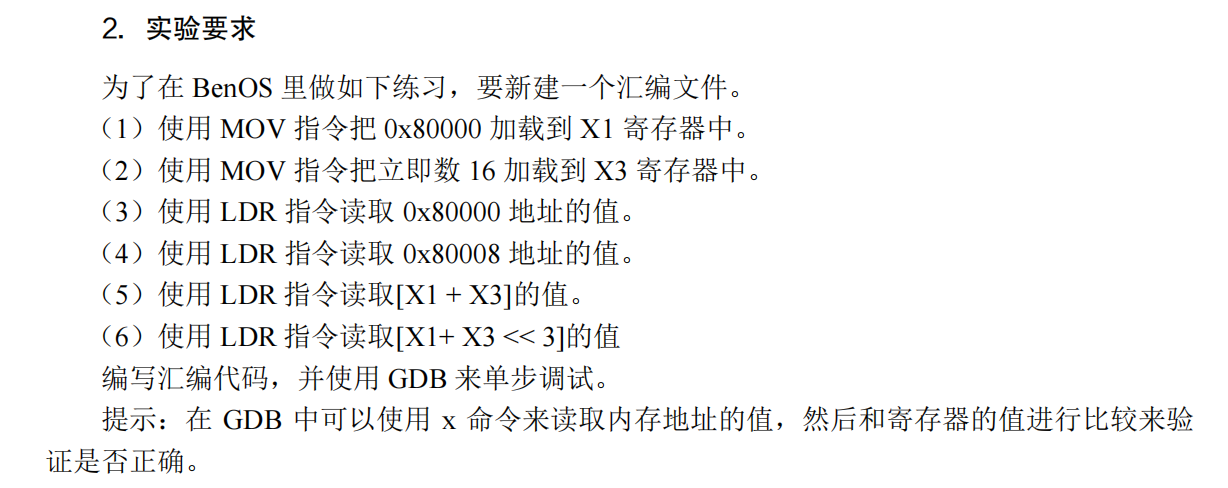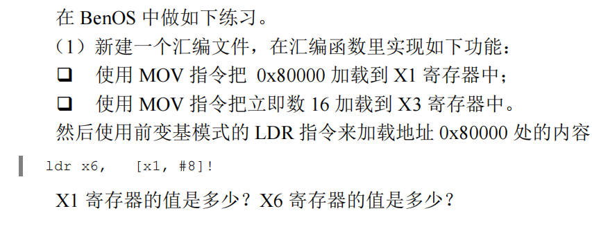 ldr x2,[0x80000],这是因为arm的指令集长度都是32位,而留给寻址地址的位数一般只有12bit,对于0x80000这样的大数据是存不下的所以CPU 的设计者规定:[] 里面必须是一个寄存器。(但是x86为什么可以这样写主要原因就是x86的指令集大小是可变长的) - 对于(5)