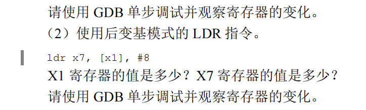 LDR X5, [X1, X3], 在编程中,数组的下标(Index)通常是一个变量(比如放在 X3 里),而不是写死的常数,所以在底层就设计了这样的汇编语言 - 对于(6)
