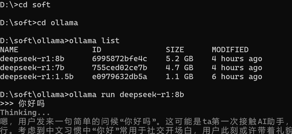 重启电脑,开机后立刻去D盘的ollama 文件夹cmd 执行 ollama list