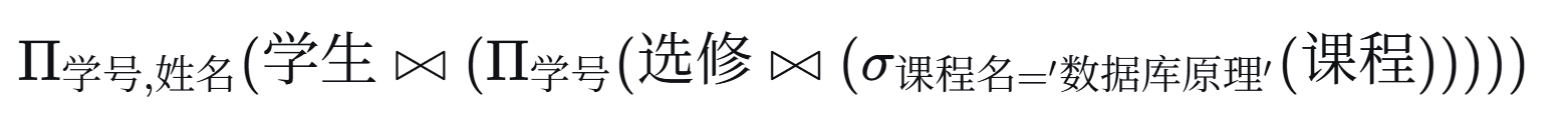 (1)查询选修了课程名为"数据库原理"的学生的学号和姓名。(关系代数,5分)