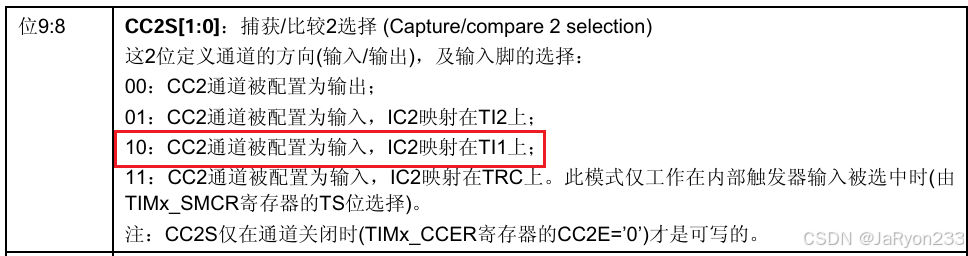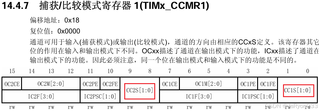 其中CC1S用于配置通道1的输入输出和信号映射关系,CC2S用于配置通道2的输入输出和信号映射关系: