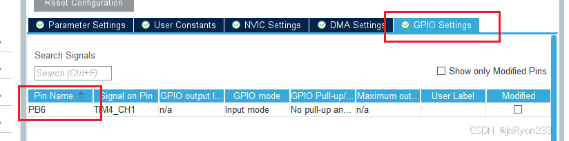 这里同样检查一下引脚是不是PB6,如果不是的话可能是HAL选择的重映射引脚,只需自己修改一下(先重置原本引脚状态,然后选择PB6引脚作为TIM4的通道1功能),不过此时修改后需要重新配置上述内容,可能稍显麻烦。