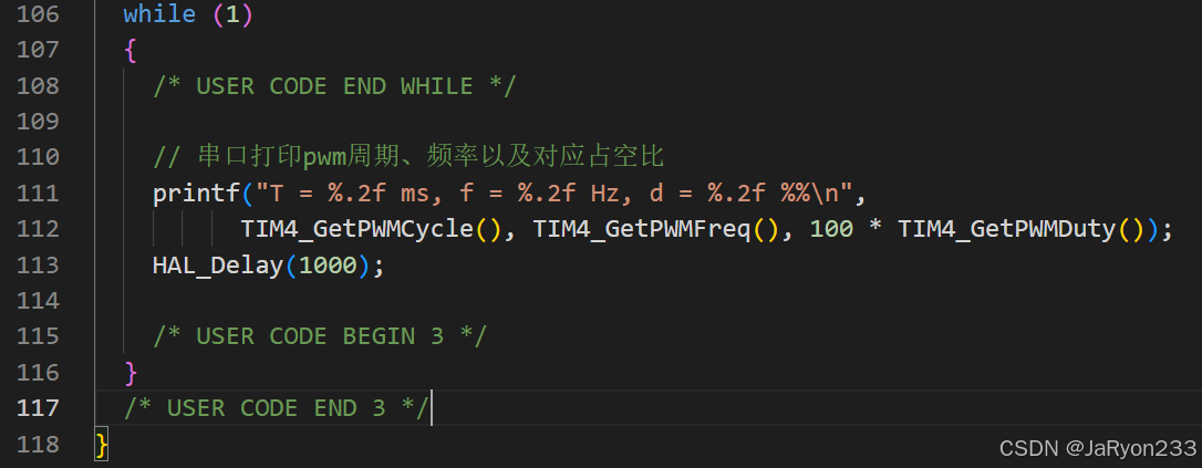 最后,补充主函数逻辑即可。由于HAL库将定时器启停单独封装函数,因此首先在main函数的while循环之前需要启动定时器相应的通道: