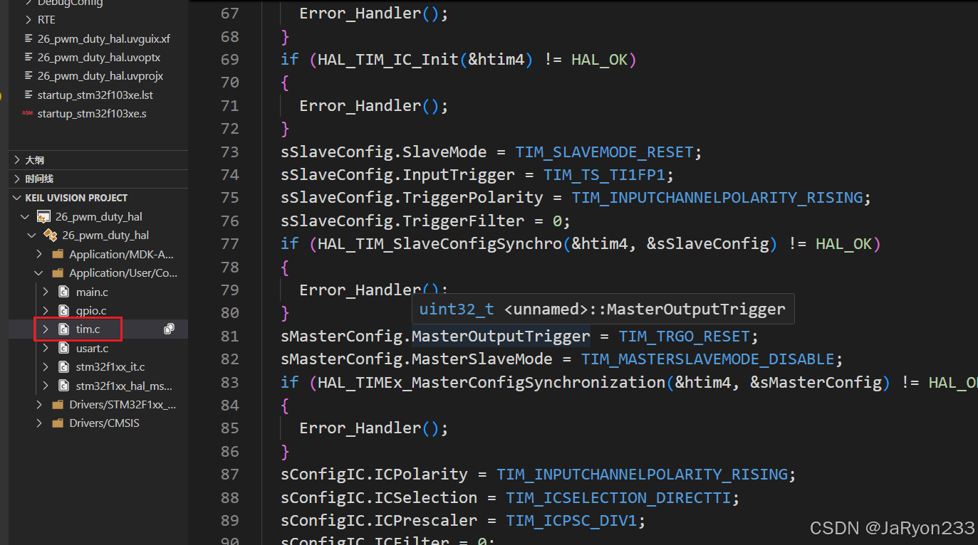 如果希望检查一下自动生成的相关初始化代码,比如定时器的,可以自行查看