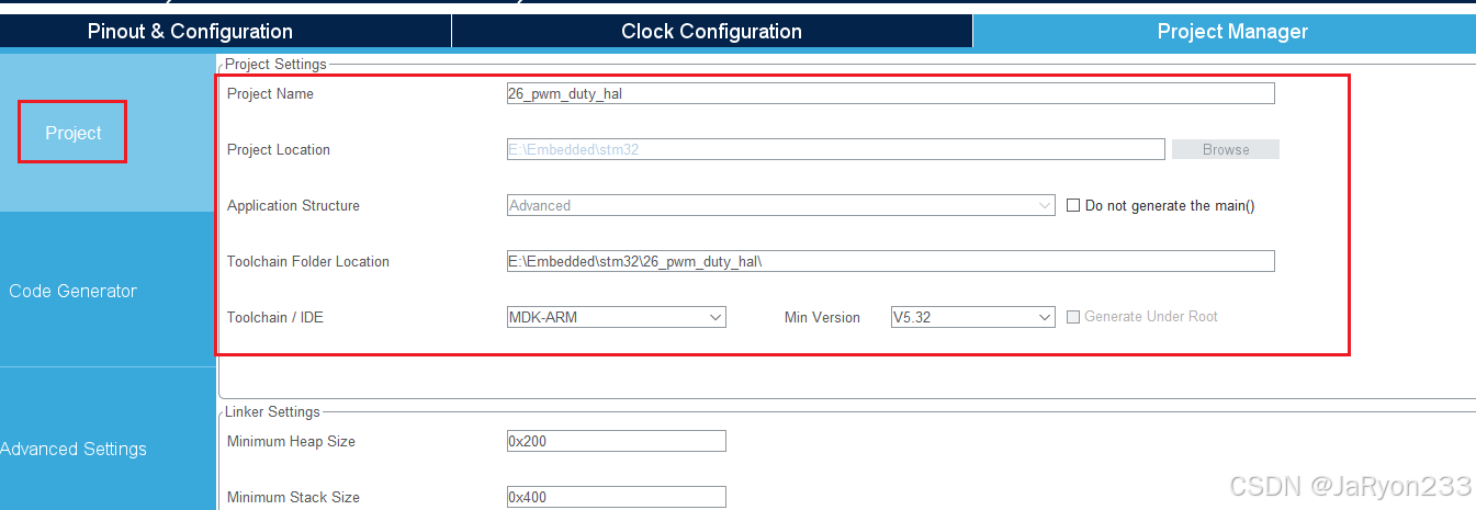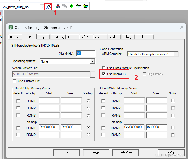图形化配置完成后,将工程用keil打开,进入魔术棒配置一下相关内容。