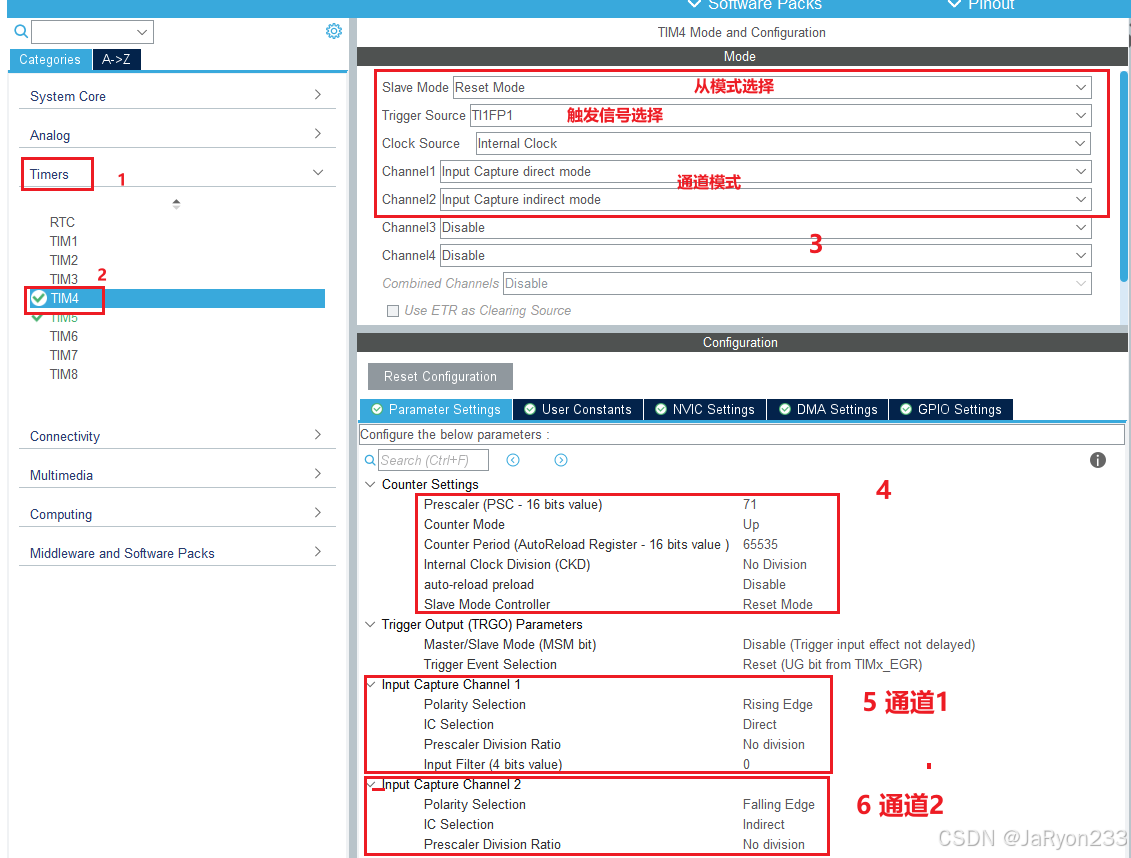 TIM4是用于测量生成的PWM,所以相对多一些,配置如下