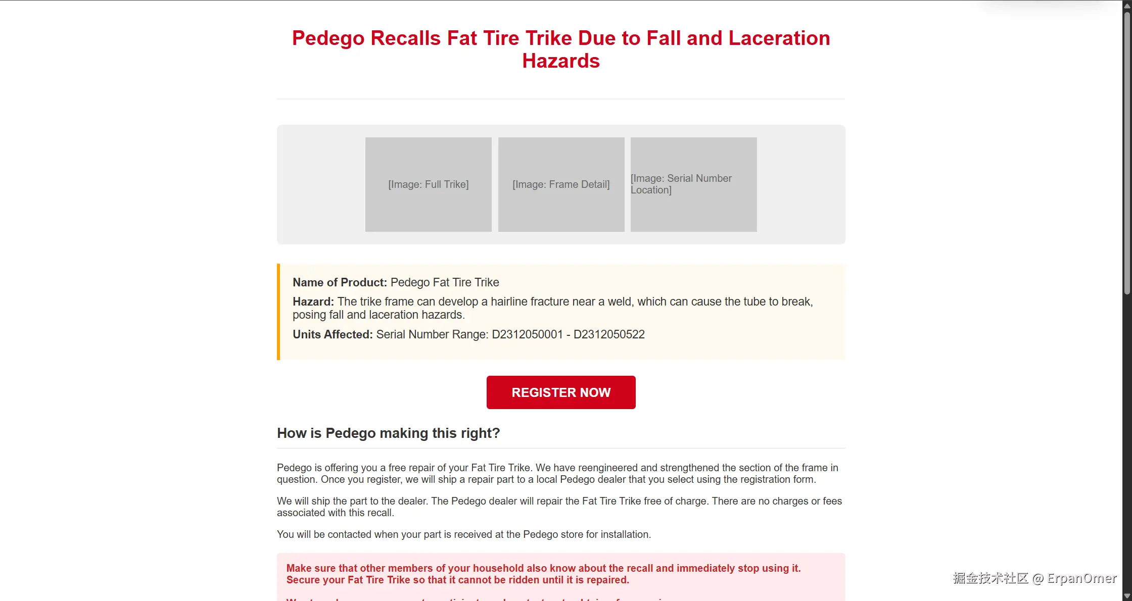 Learn more (可点击,跳转至Fat Tire Trike Recall Page)