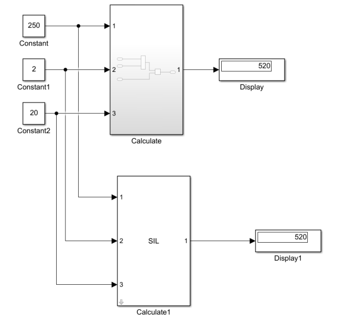 把SIL模块复制到自建模型中,进行等效性测试,看MIL和SIL测试结果是否相同: