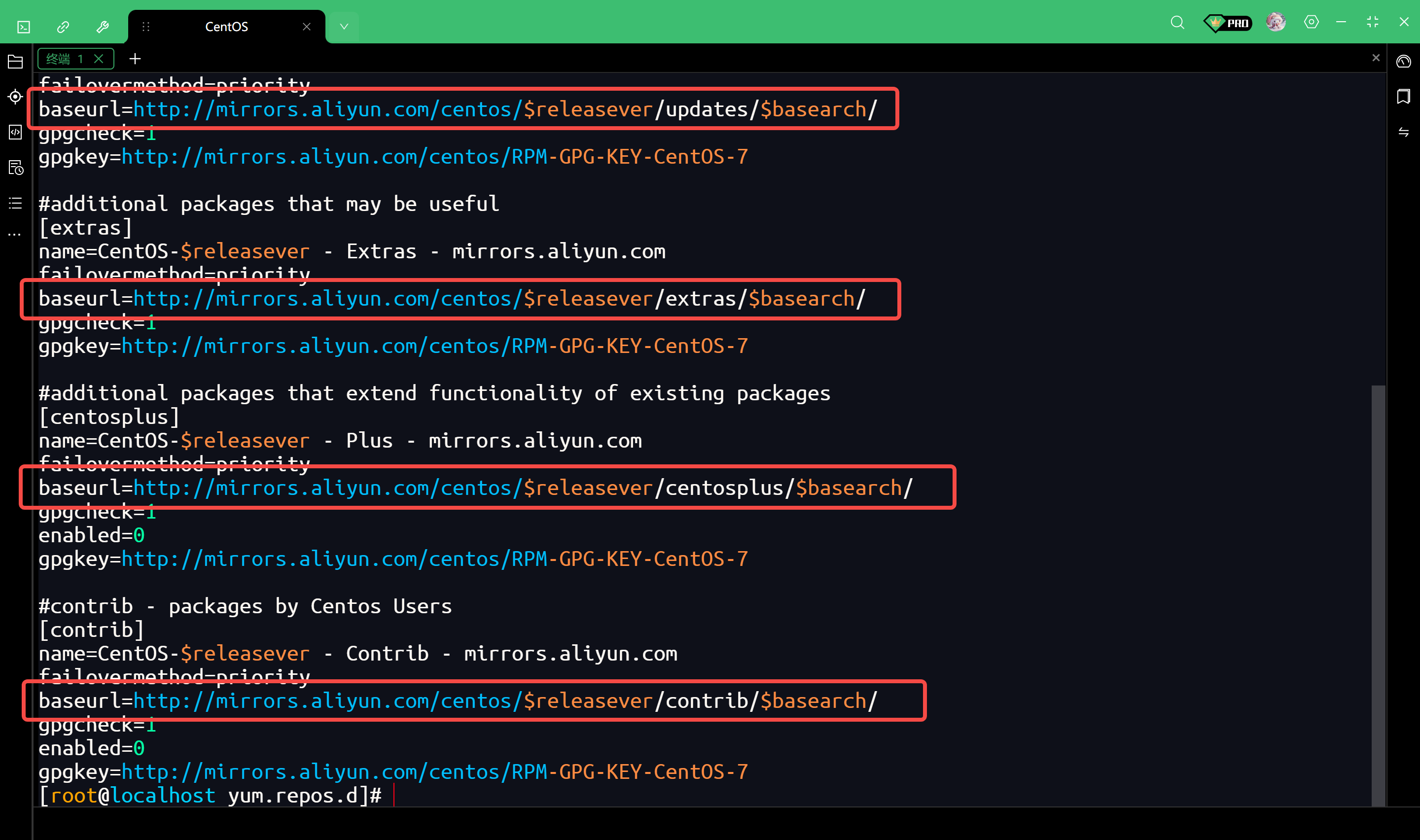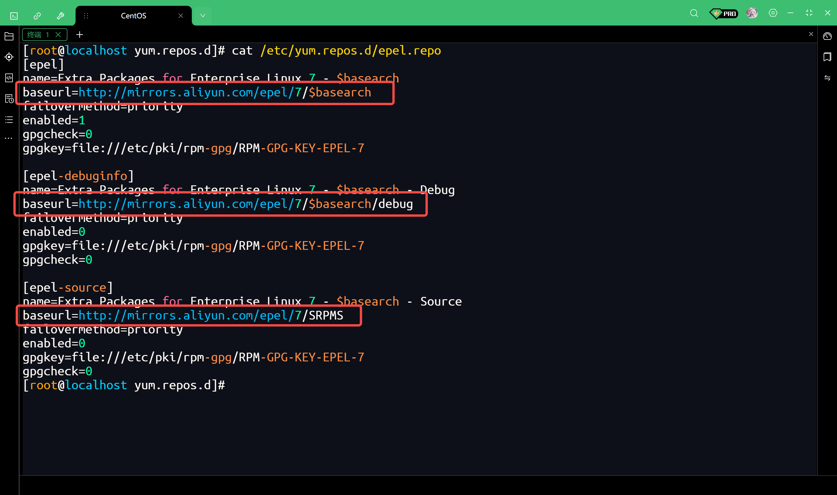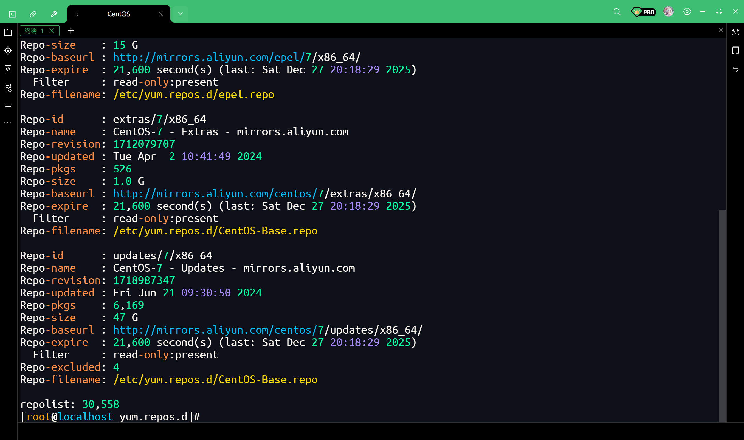 看输出内容中的 baseurl 字段,如果看到 mirrors.aliyun.com,说明配置完全正确