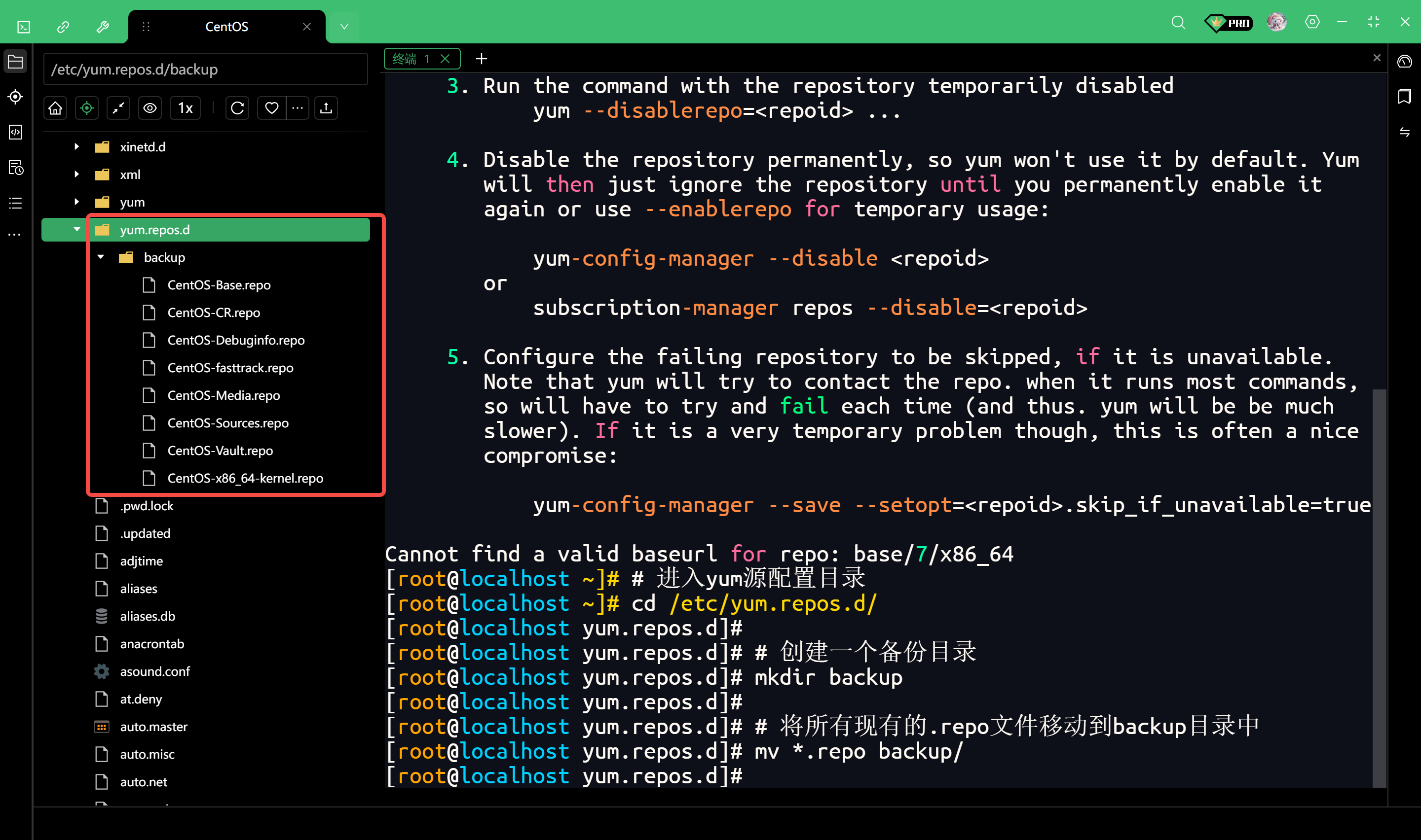# 将所有现有的.repo文件移动到backup目录中