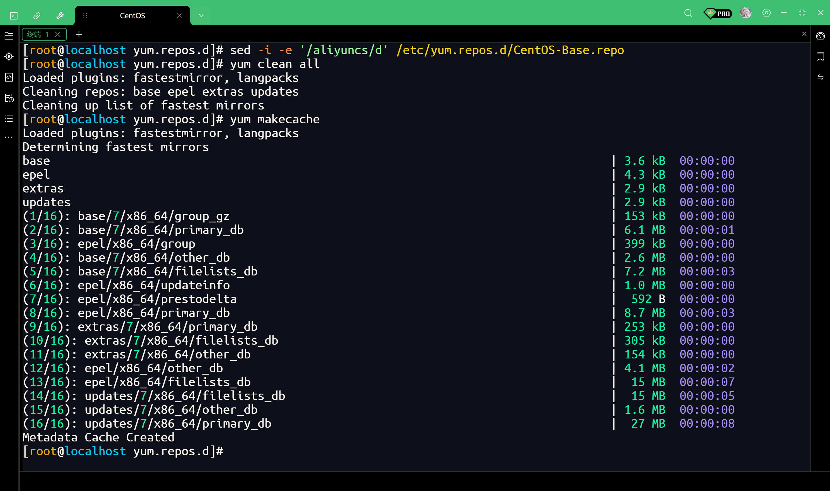清理旧缓存并为新的阿里云源建立元数据