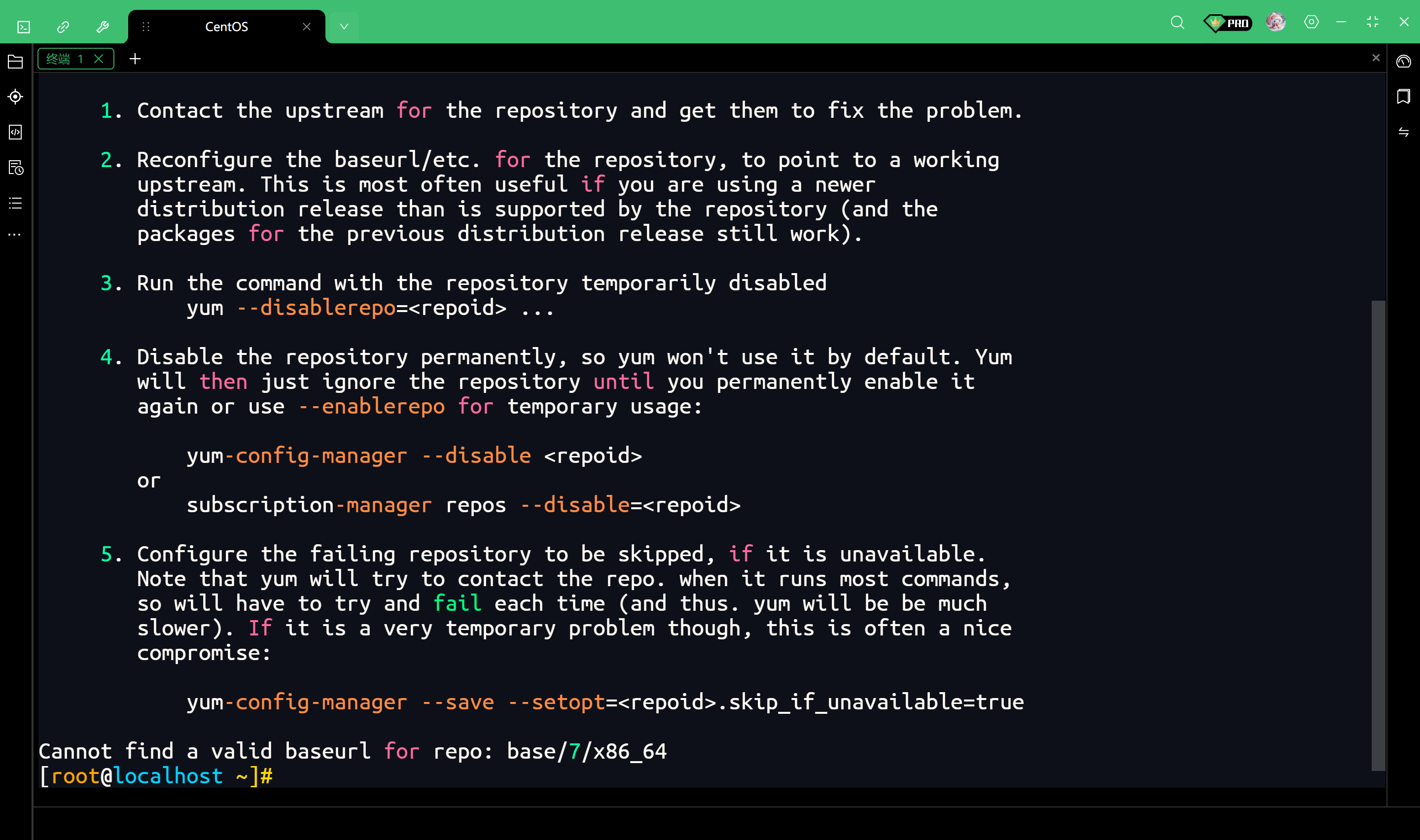 Cannot find a valid baseurl for repo: base/7/x86_64