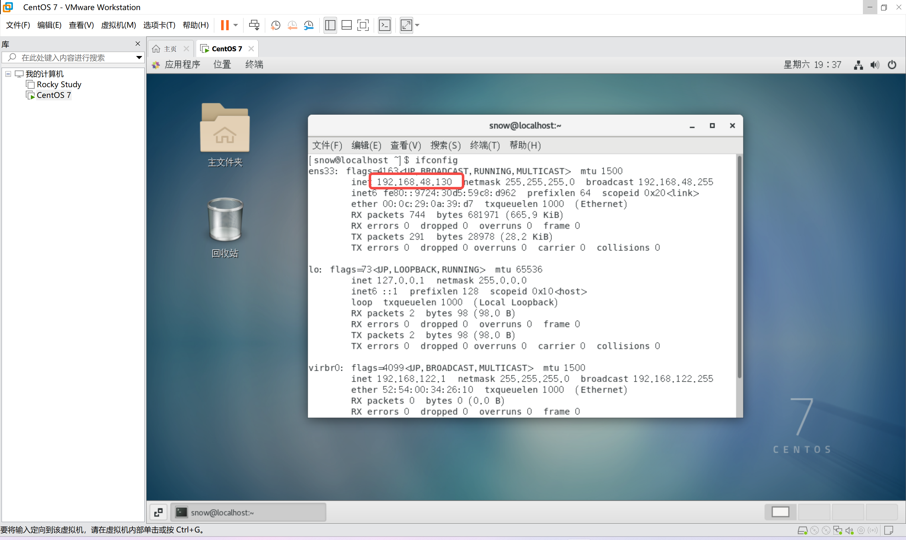 用【ifconfig】命令查看IP地址,然后就可以连接了