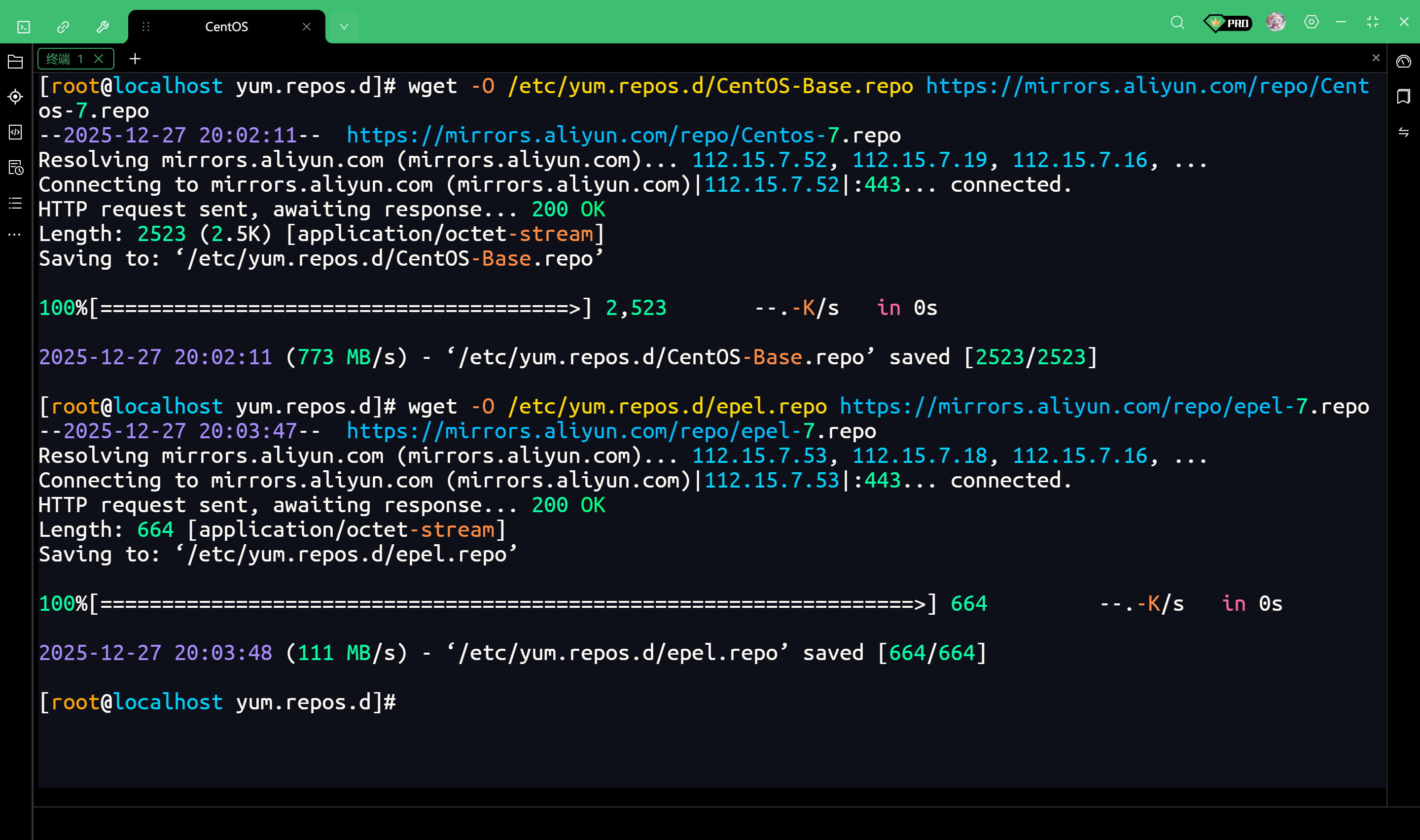 阿里云提供的这个 CentOS-7.repo 配置文件里,不仅包含了公网地址(mirrors.aliyun.com),还包含了阿里云服务器专用的内网地址(mirrors.aliyuncs.com)。