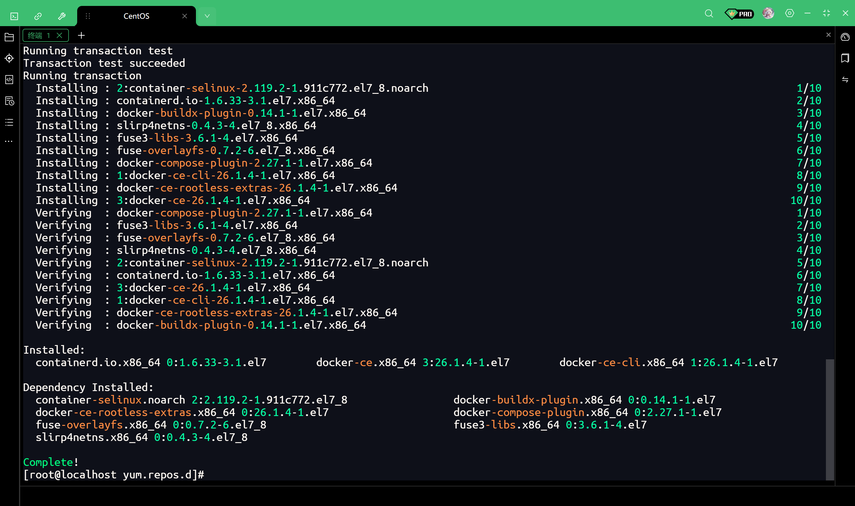 yum install -y docker-ce docker-ce-cli containerd.io