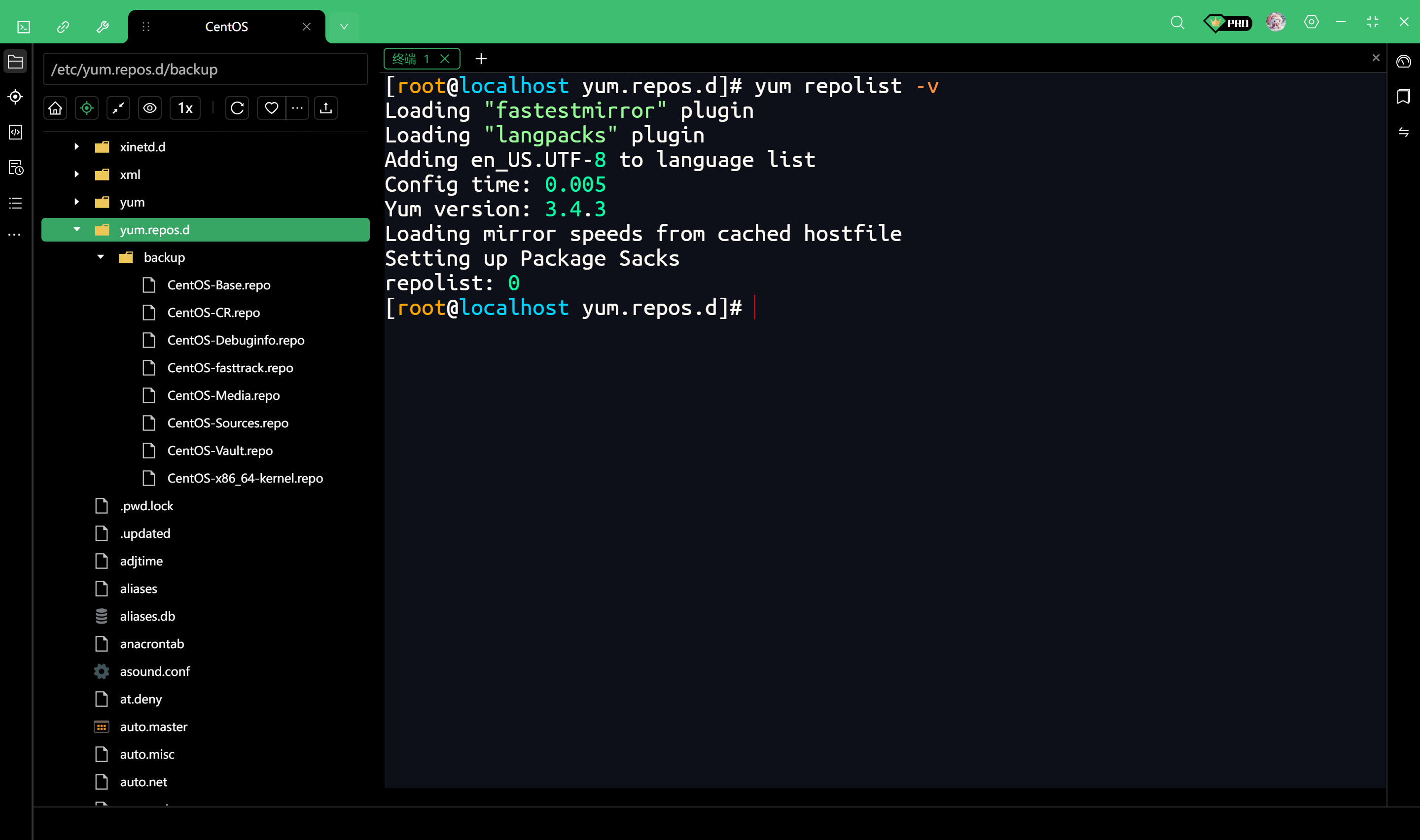 执行完这一步后,【yum.repos.d】目录下应该是空的(除了backup文件夹),这样就彻底把官方源移走了