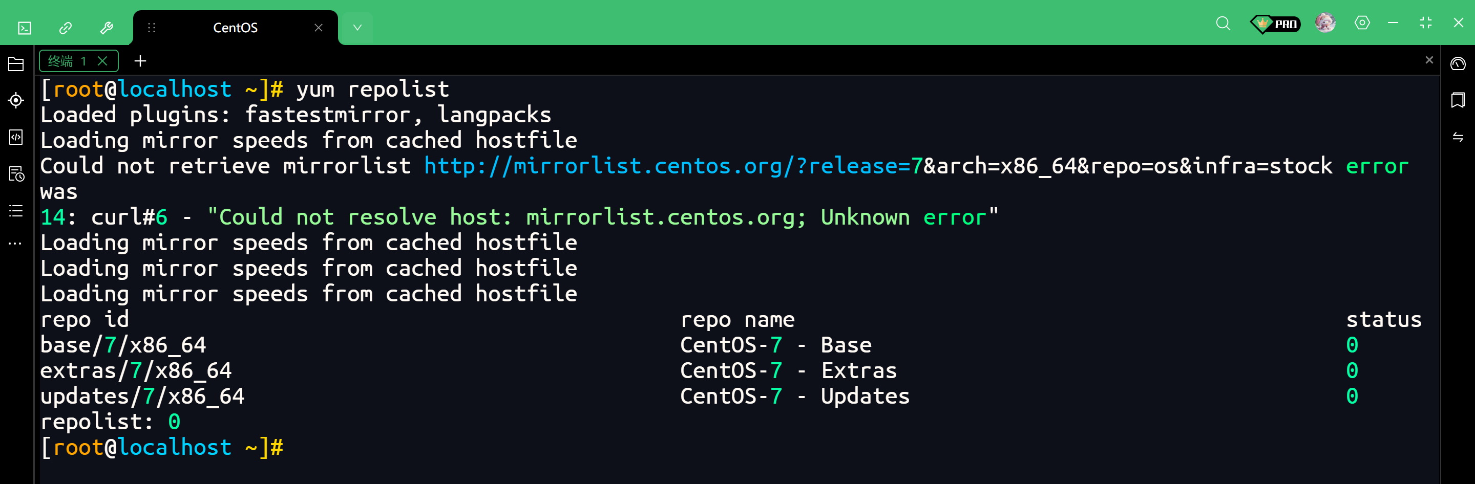 14: curl#6 - "Could not resolve host: mirrorlist.centos.org; Unknown error"