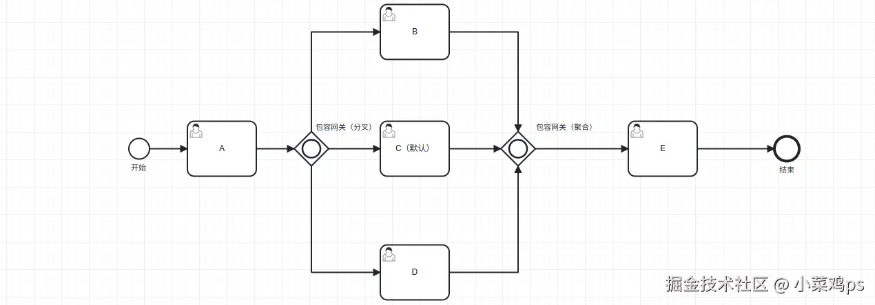 包容网关,内置活跃分支计数器,等所有活跃分支到达才放行一次,可模拟并行网关。但 性能略差(包容网关计算更复杂),无实际收益。