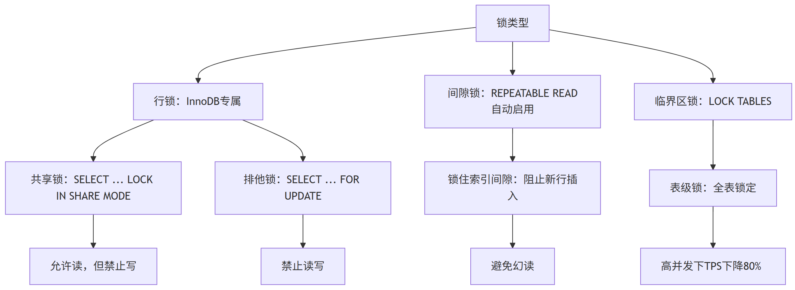 操作 TPS 事务延迟(ms) 适用场景 无锁 1500 1.0 低并发报表 行锁 1400 1.5 高并发事务 间隙锁 1350 2.0 高并发事务(避免幻读) 临界区锁 300 10.0 禁用