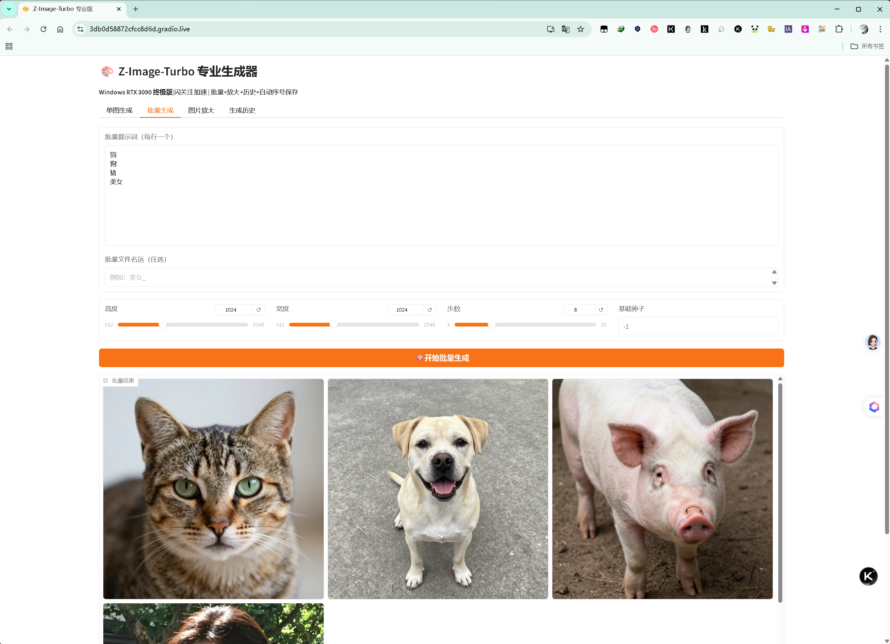 批量生成示例(猫、狗、猪、美女):